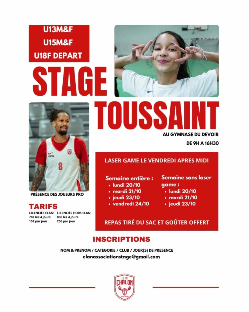 Au programme: séances d’entrainements avec jeux et perfectionnement, présence des joueurs pros, et cette année, Laser game le vendredi après-midi.